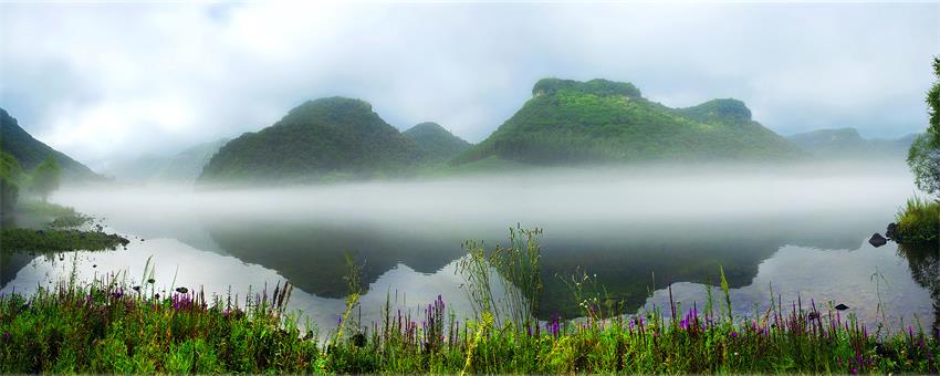 霧漫松江俏秋山